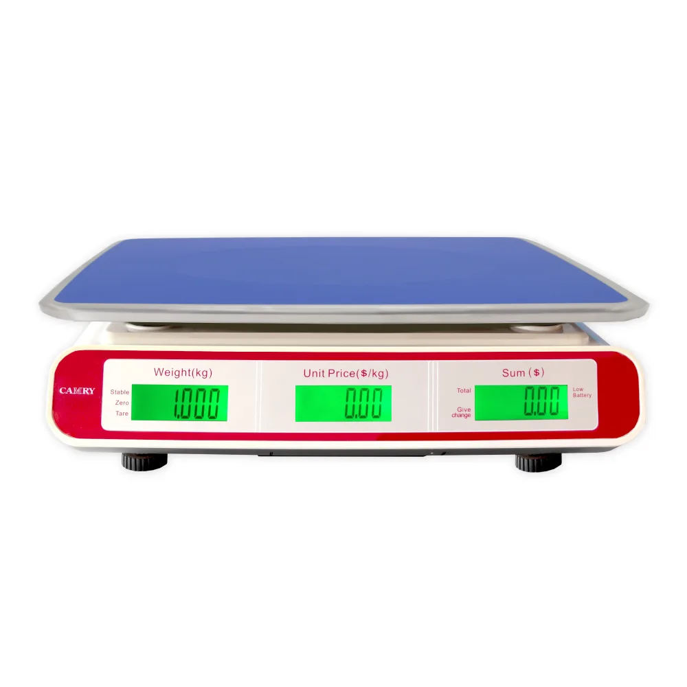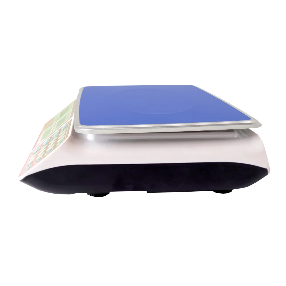 Balanza digital de sobremesa, diseñada para pesar productos de forma rápida y precisa en entornos comerciales.