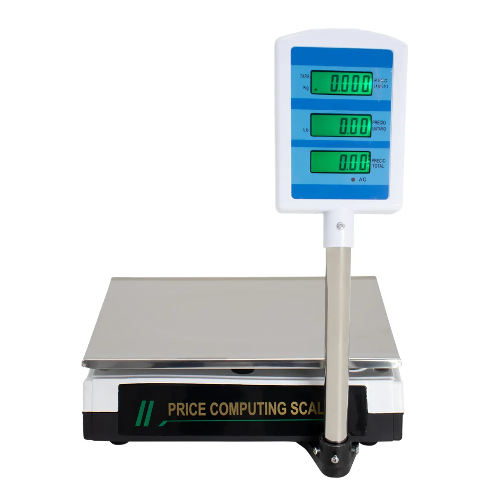 Balanza digital con diseño compacto y liviano, ideal para mercados y negocios minoristas.