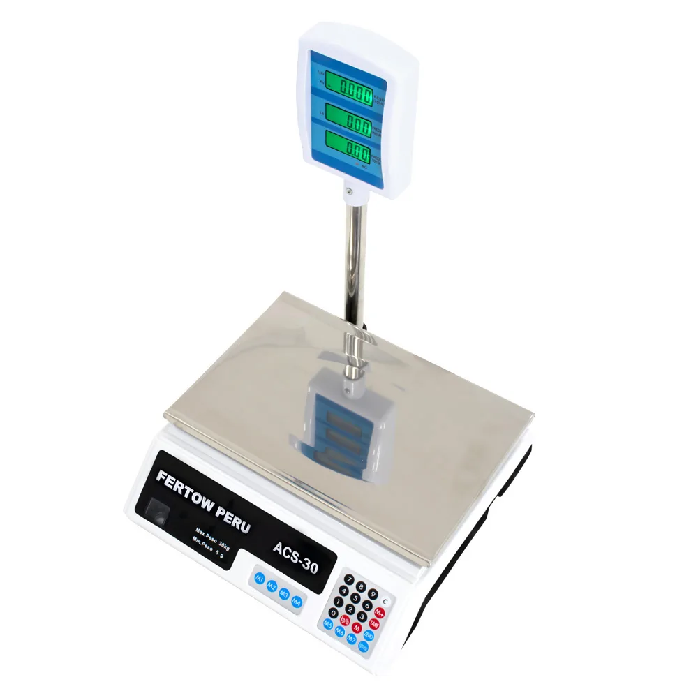 Capacidad de pesaje de hasta 30 kg, ideal para productos de diversos tamaños.