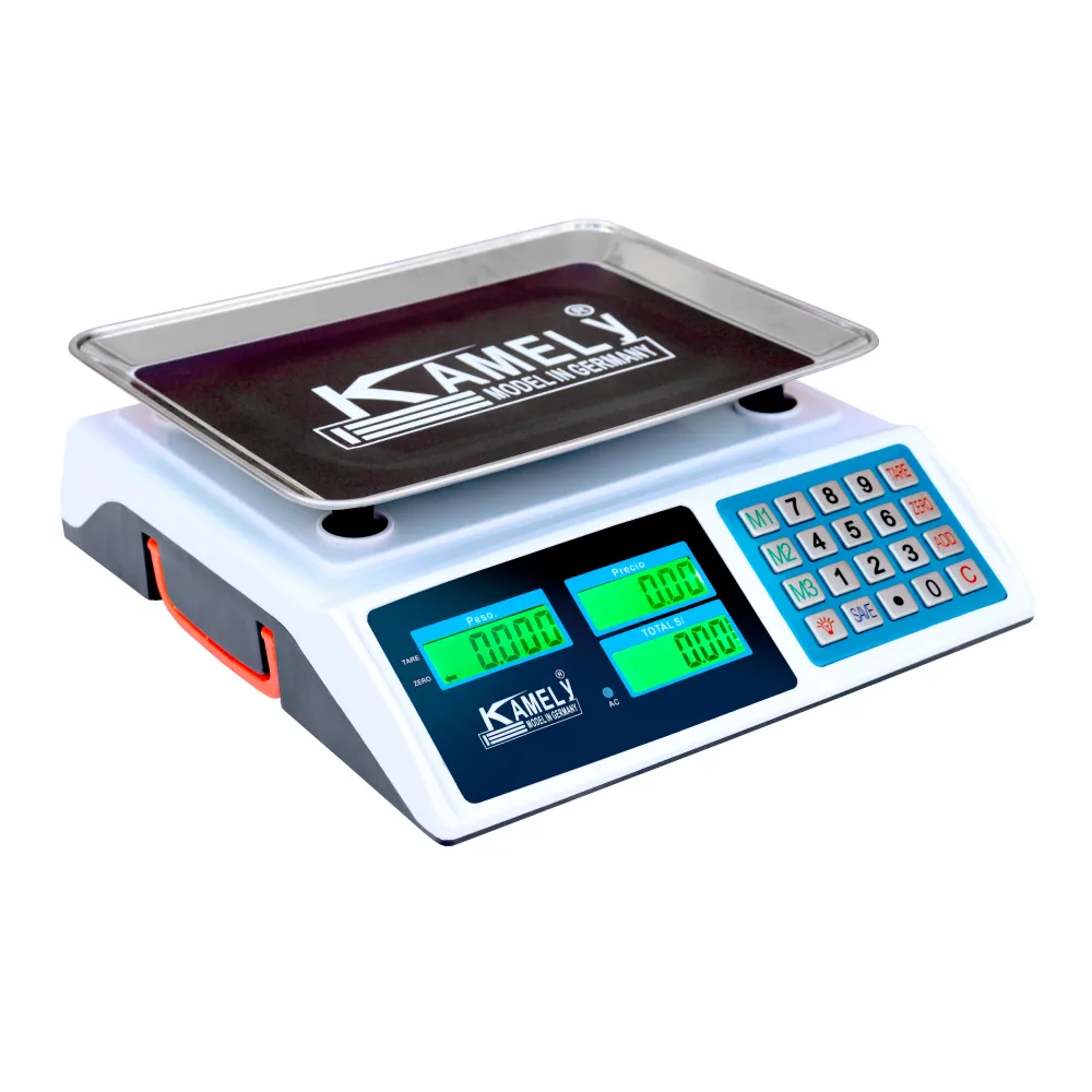 Funciones de pesaje: Ofrece funciones de peso, precio unitario e importe total, además de un cálculo automático del precio total. Incluye opción de tara y función de cero para reiniciar el peso rápidamente.