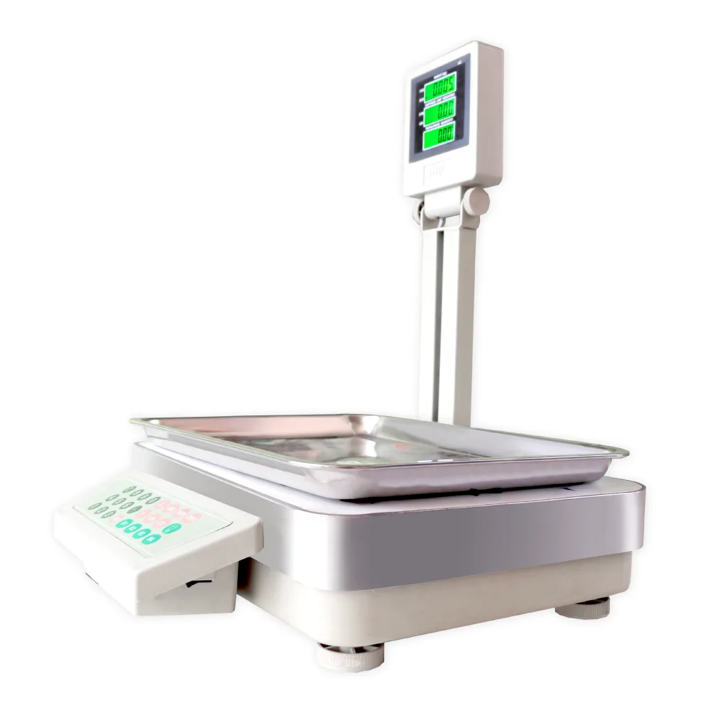 Balanza electrónica digital de mesa diseñada para pesajes rápidos.