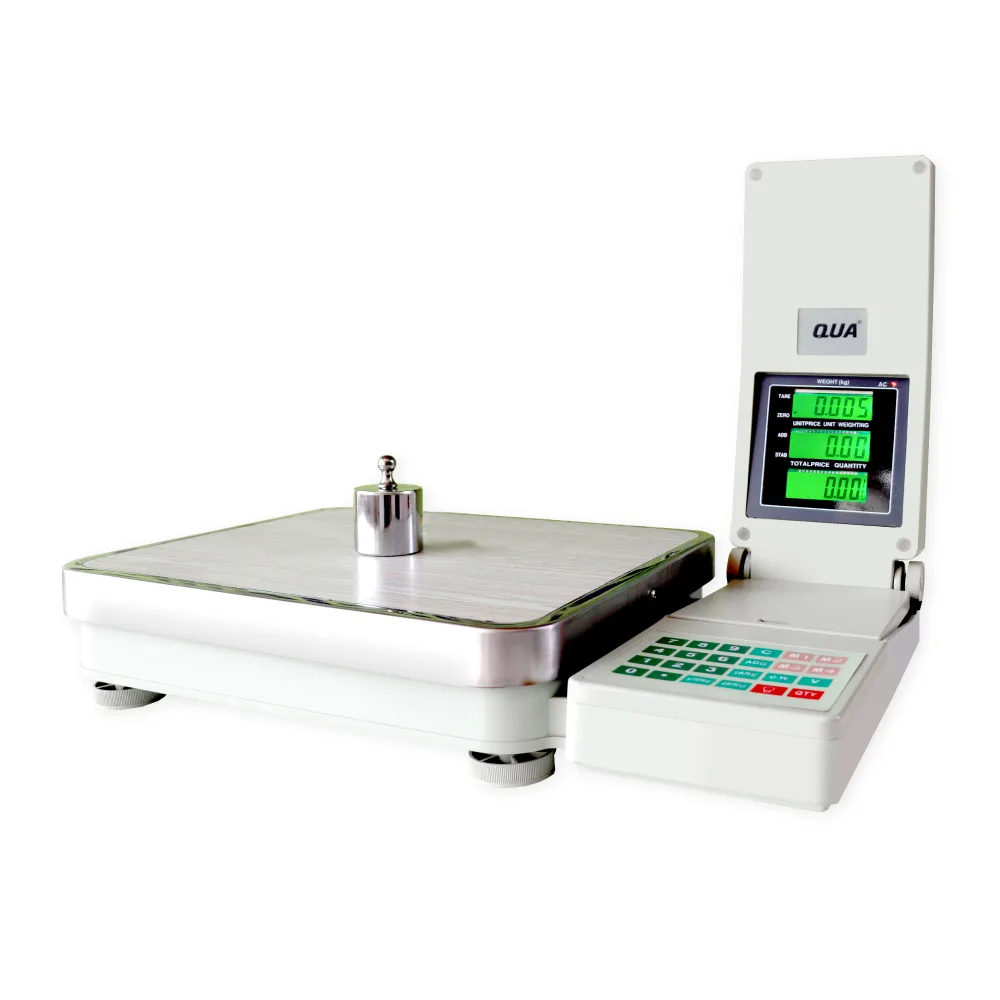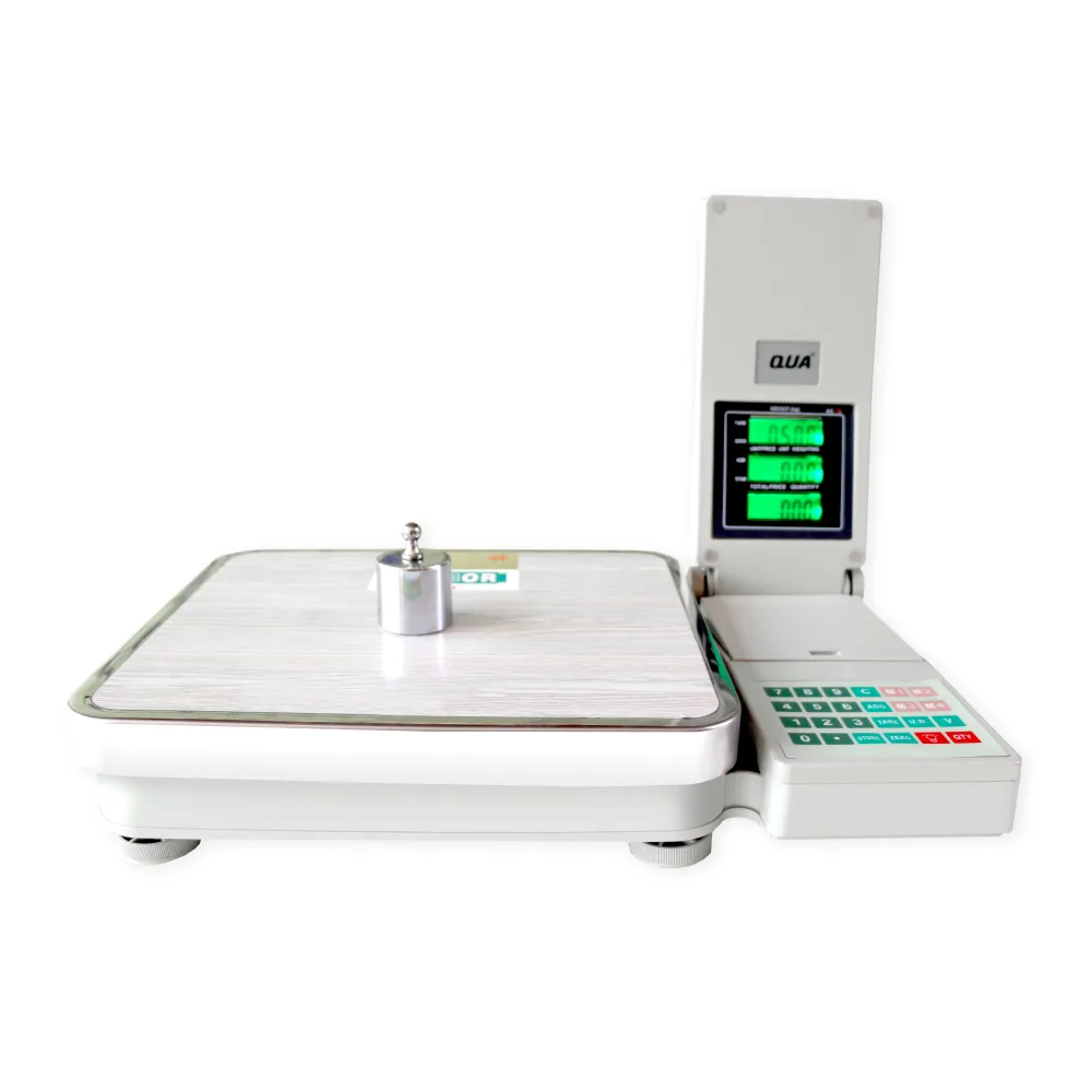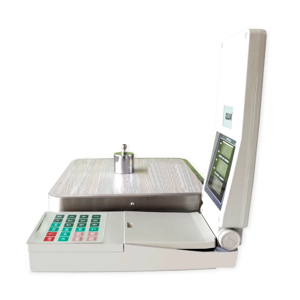 Balanza electrónica digital de mesa diseñada para pesajes rápidos.
