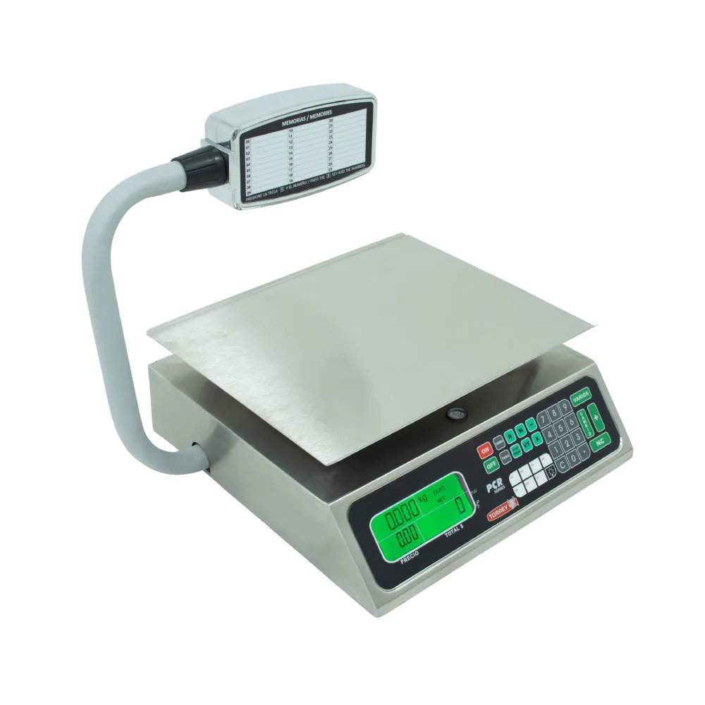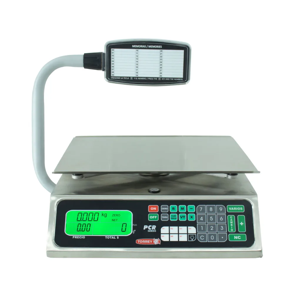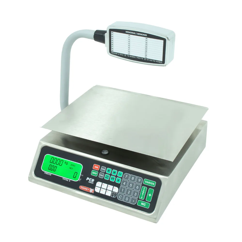 Doble pantalla delantera y posterior para fácil lectura para operador y cliente.
