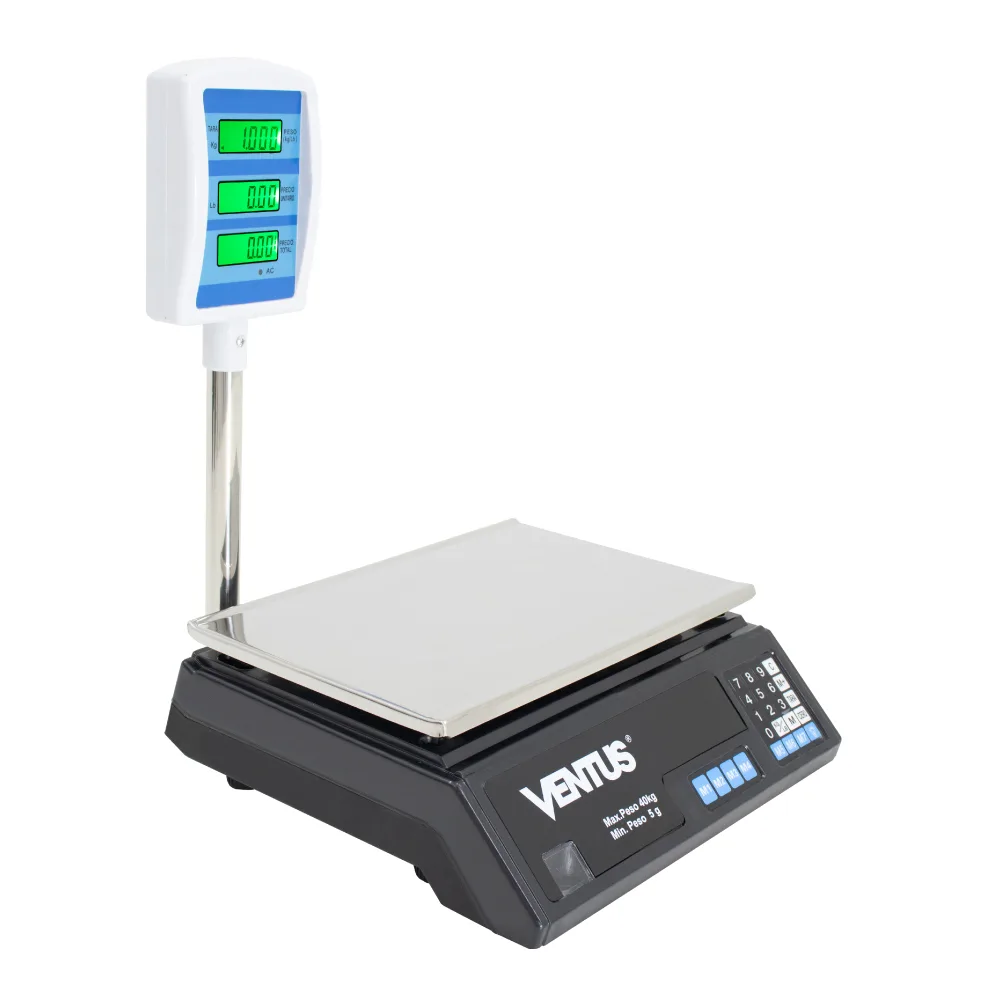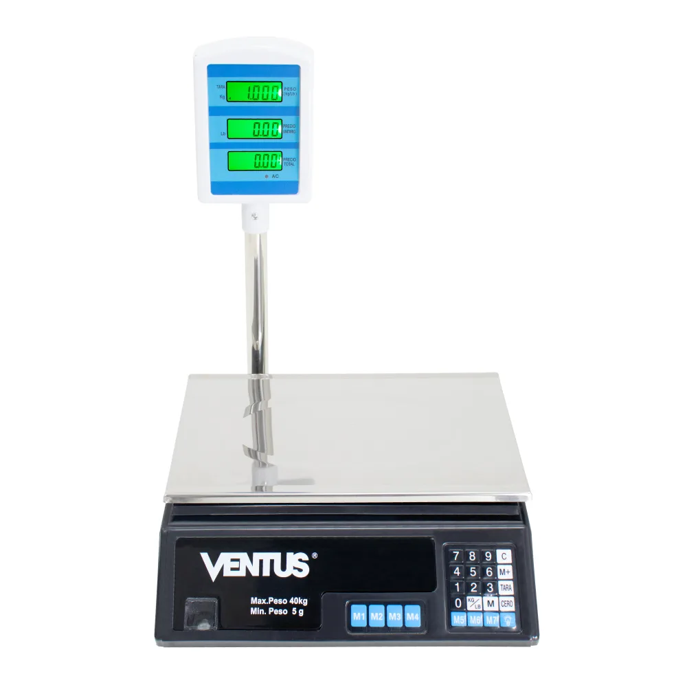 Doble pantalla delantera y posterior para fácil lectura para operador y cliente.